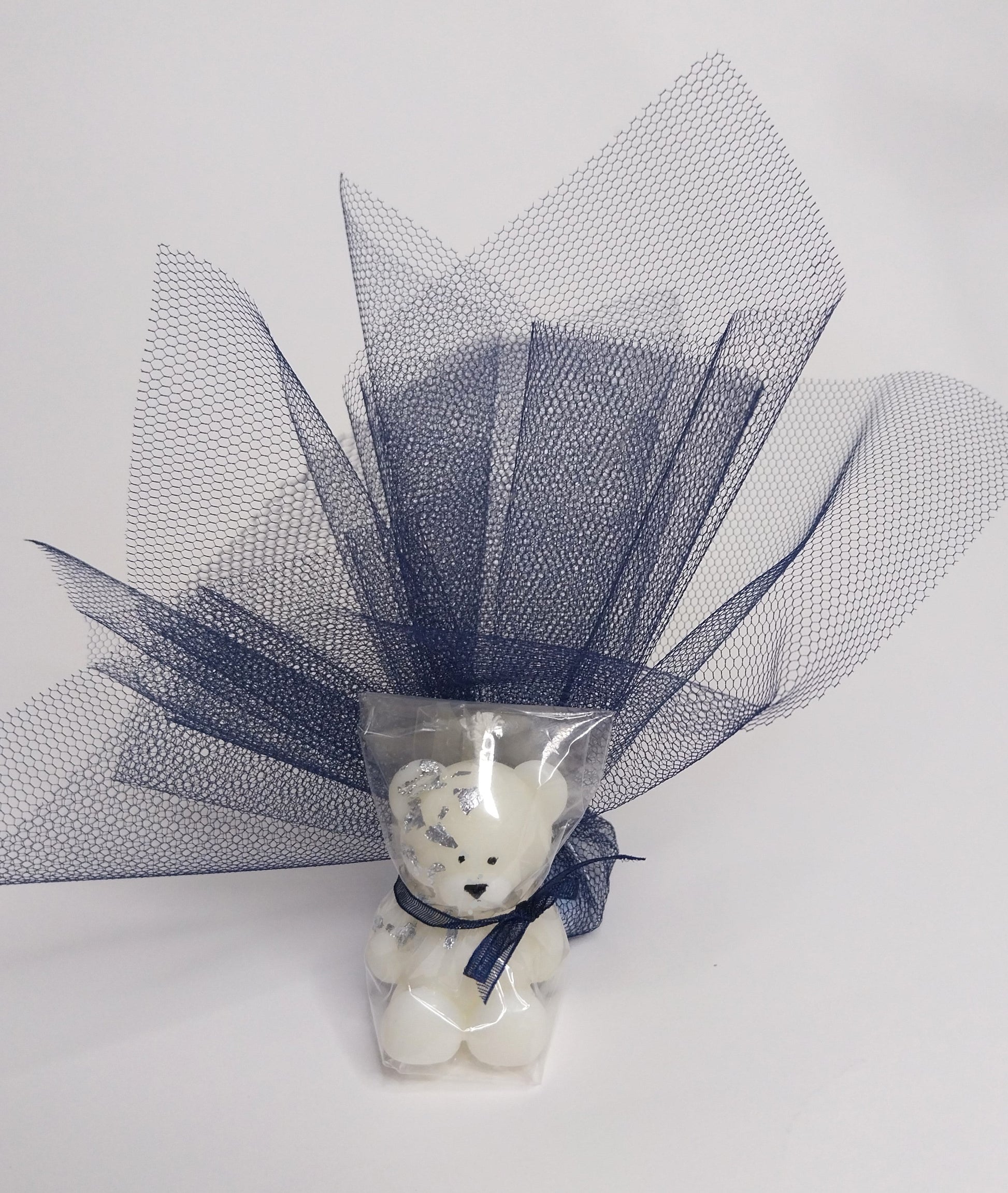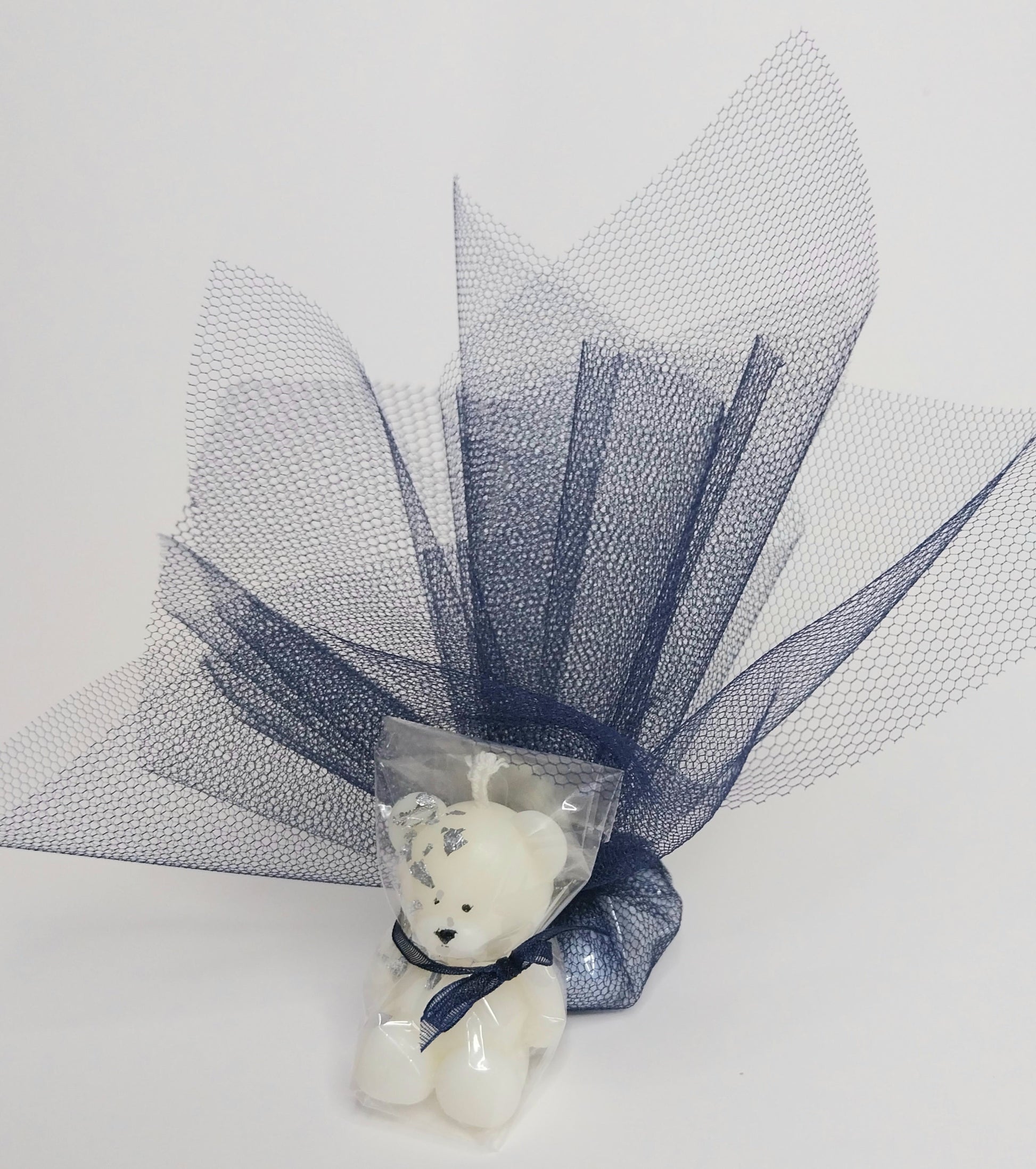 Μπομπονιέρα αρκουδάκι . Με 3 κουφέτα crispo.